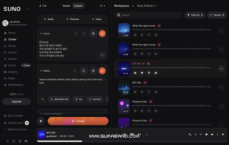 SUNO가 생각나서 들어가보니 그 사이 v5까지 나와있었고 결과물이 기대 이상으로 좋아서