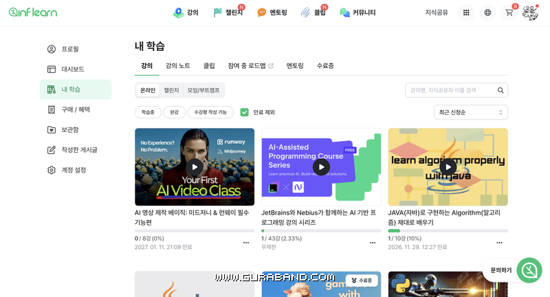 한동안 인프런은 잘 안들어갔다가 작년 하반기부터는 거의 매일 들어가서 신규 강의와 할인 강의를 구경하고 있다.