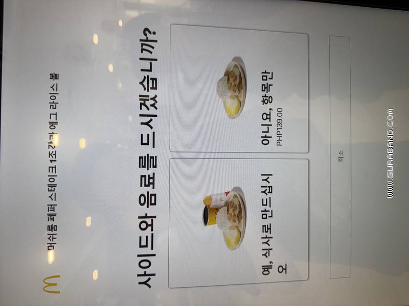 세트 메뉴(meal)를 선택하겠냐는 의미였을 거다.