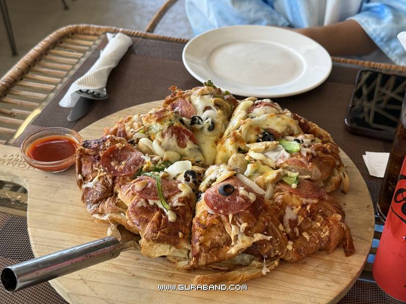 숙소로 돌아와서 숙소내 레스토랑에서 ‘크로와상 피자’라는 것을 팔길래 호기심에 먹어봤다.