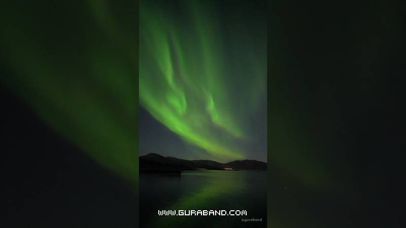 트롬쇠의 오로라 투어 중에 본 오로라.천천히 흩날리는 모습에 바다의 반영까지 어우러져 아름다웠다.2025.10.04a7c2 + SEL24F14GM