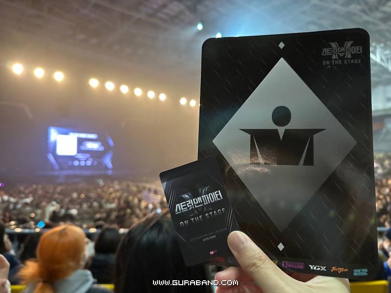 입장할 때 위 사진의 커다란 카드를 받았다. 저지카드라고, 앞뒤로 다른 색상에 다른 무늬가 그려져 있었다. 공연 중 세 차례 배틀이 있었는데 그 때 관객들이 저지카드로 더 잘했다고 생각하는 쪽의 카드를 들어서 평가를 했다.