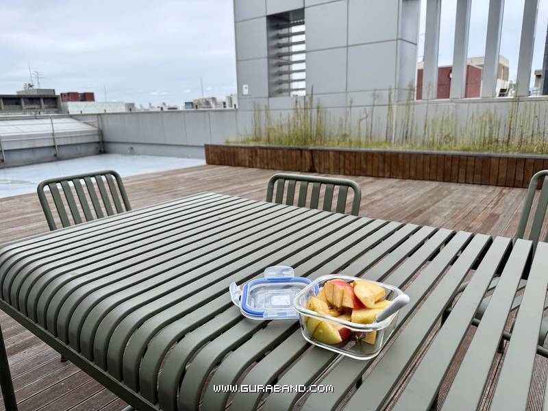 옥상의 휴게공간에서 찬바람을 맞으며 사과를 먹었다.