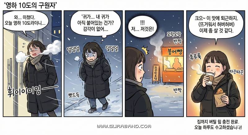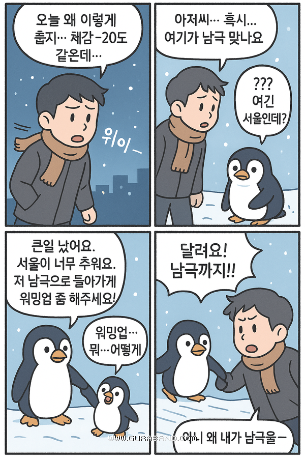 '추운 퇴근길'로 4컷 만화를 그려달라고 했다.