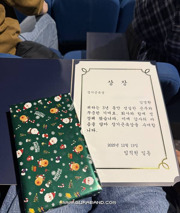 나는 근속상을 받았다. 3년 다닌 걸로 상까지 받을 일인가 싶긴 했지만 빈손으로 가는 것보단 낫지.