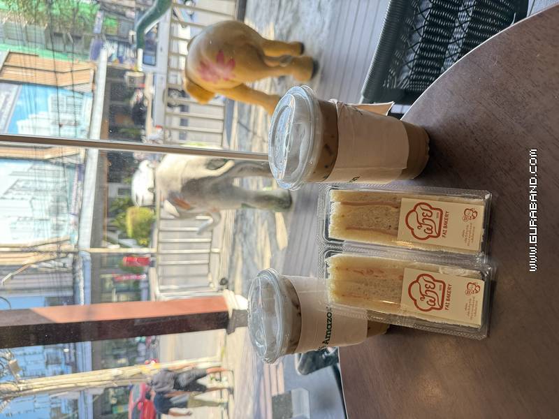그 옆의 체인점 카페에서 코끼리 석상의 엉덩이를 보며 커피와 샌드위치로 아침을 먹었다.