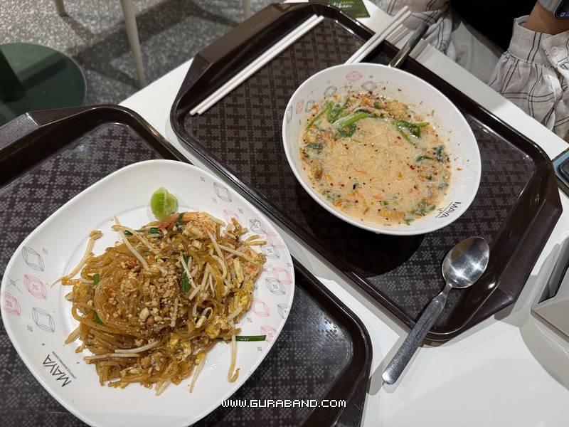 새우 팟타이랑 '돼지고기 튀긴 것이 들어간 크림 똠양면' 그리고 로띠(전병 같은 것)를 사먹고 1바트를 거슬러 받았다.