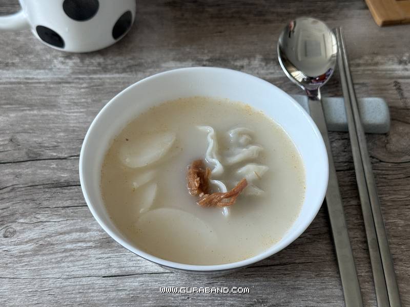 늦잠 자고 일어나서 와이프가 차려준 떡만두국을 먹고