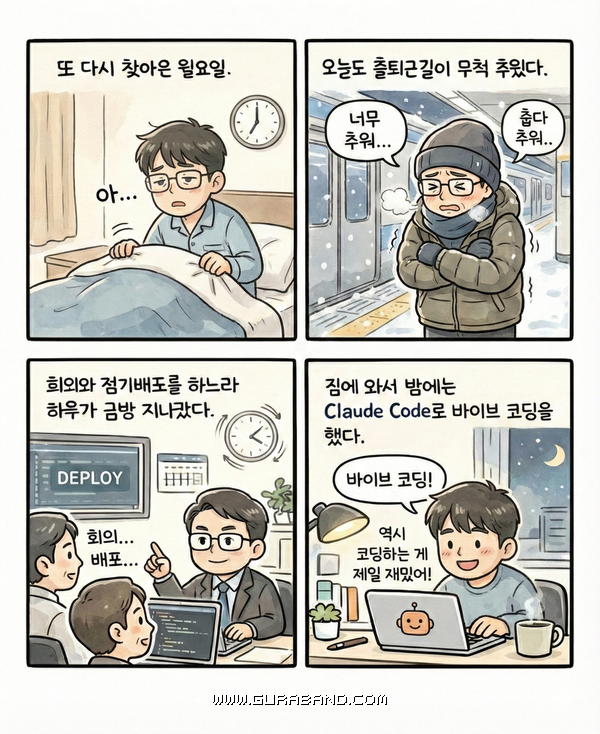 오늘은 특별한 일이 없어서 AI가 그려준 4컷 만화로 대신한다.