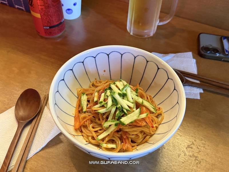 세운상가에 위치한 한 대림국수라는 곳에서 물비빔면과 꼬치를 먹었다.