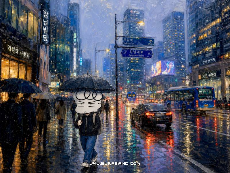 출근할 땐 맑았지만 퇴근할 땐 비가 살짝 내렸다.