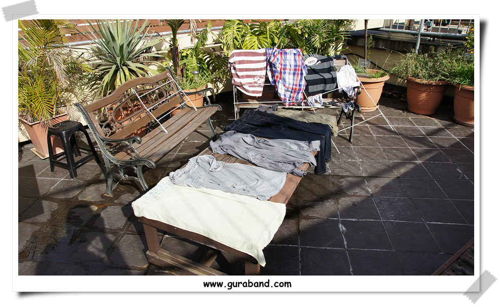 객실 내부는 창문도 없다시피하고 환기도 거의 안되었기 때문에 방에서 말릴 수는 없었다.