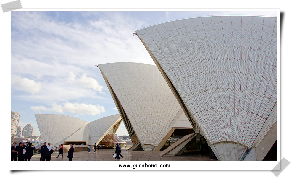 오페라하우스의 계단을 올라 공연장을 등지고 서서 항구쪽을 바라본 것.
